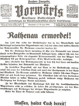 aufgetreten. Am Morgen des nächsten Tages wurde Rathenau ermordet, als